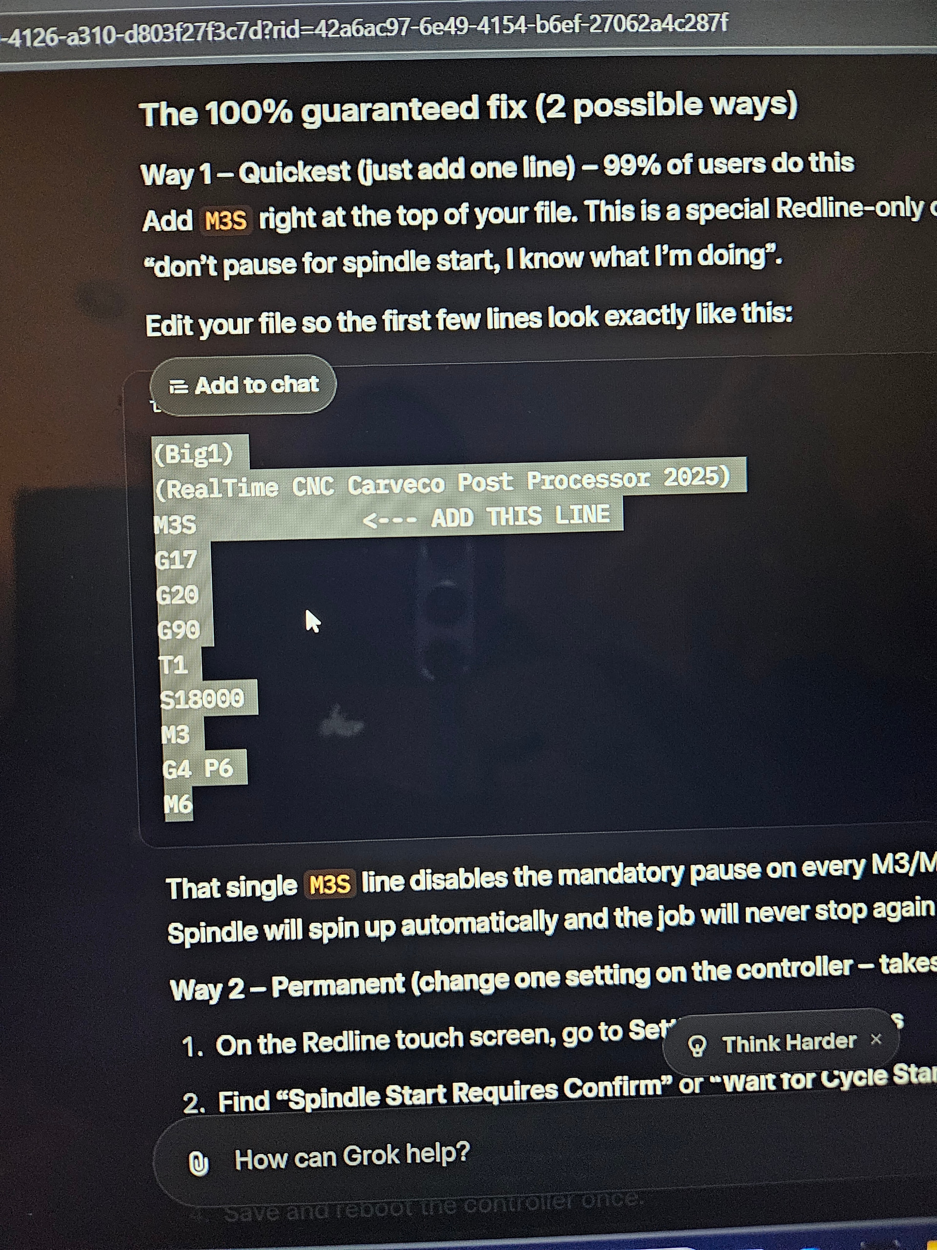 I have the redline onefinity elite foreman first batch . I can’t get the controller (X-Box) to link . I m running 1.1.1 and post processor for redline and I always have issues. When I probably 50% of the time it goes the opposite way and never touches the pad. When using carveco maker software and create a file i upload it and before it start I get error S18000 M3 so then I split them up and get a new error. Another issues I get a lot when homing the x moves bit pops error and won’t home. Everything I do this machines fines a way to not work. IVe asked for help but onefinity never responded! So unhappy right now