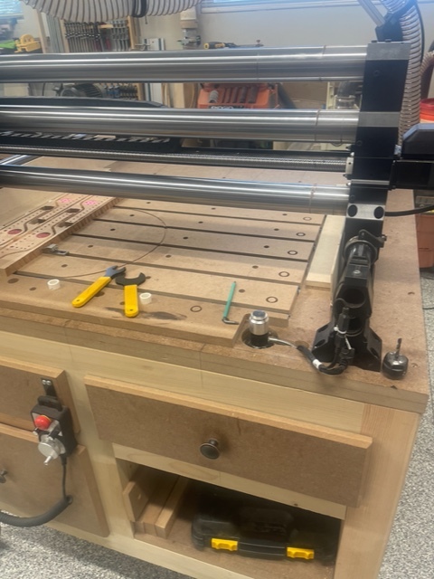 Once the machine is installed on the top, I will mill out a pattern of holes to take a flanged threaded insert. the spoilboard will be bolted to the top of the table.