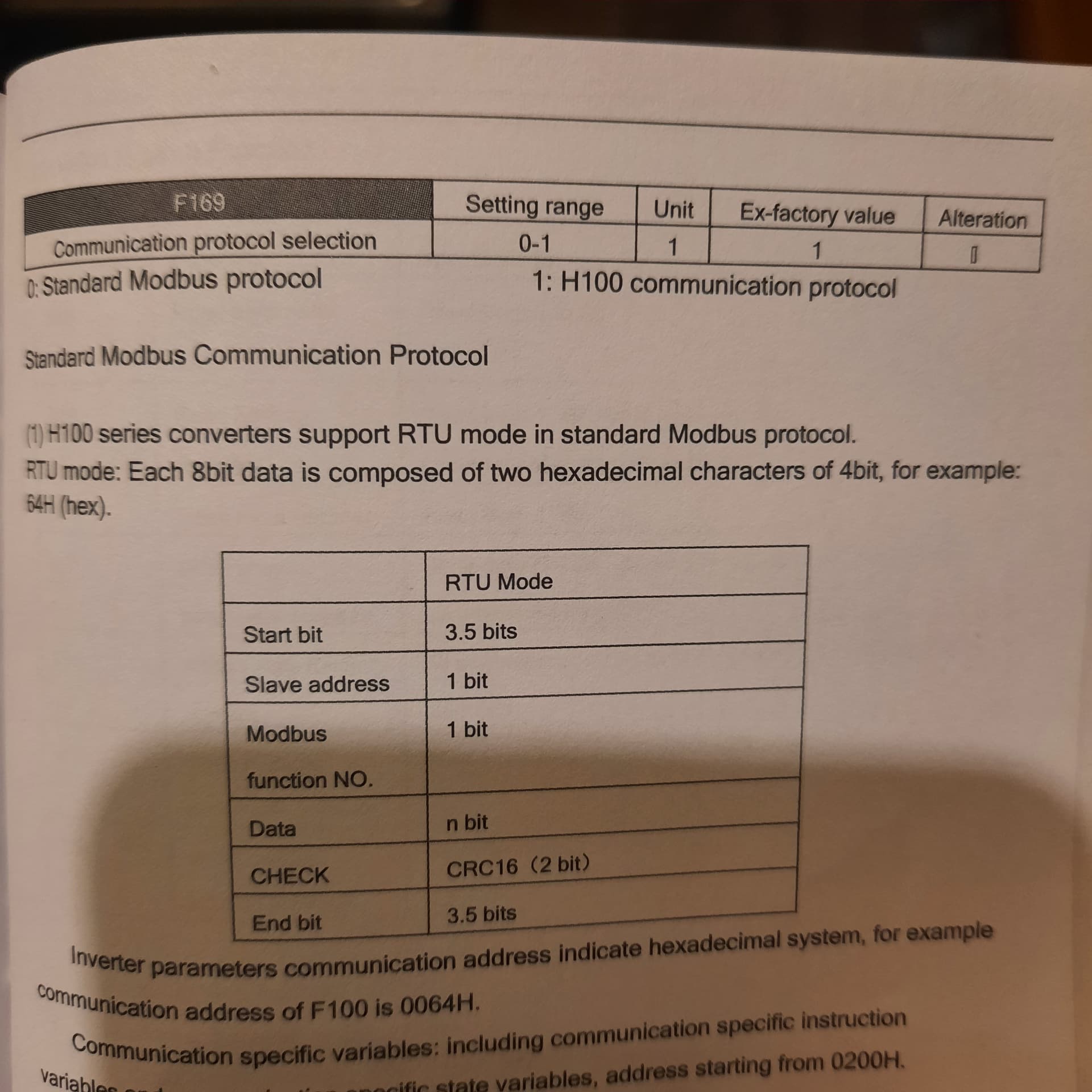 Anyway, the ModBus RS-485 settings F163, F164, and F165 are the same as on the Huanyang the settings PD163, PD164, and PD165: