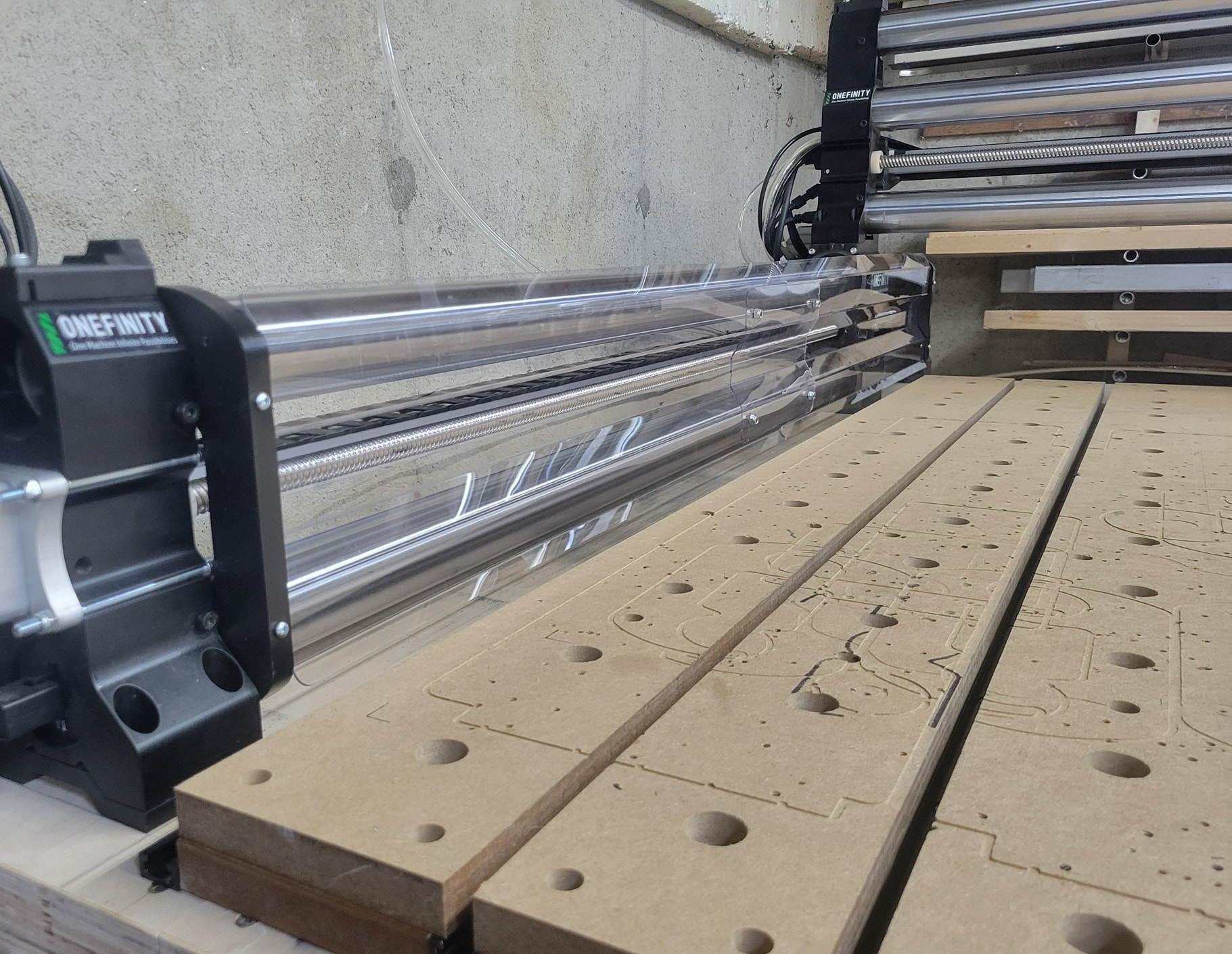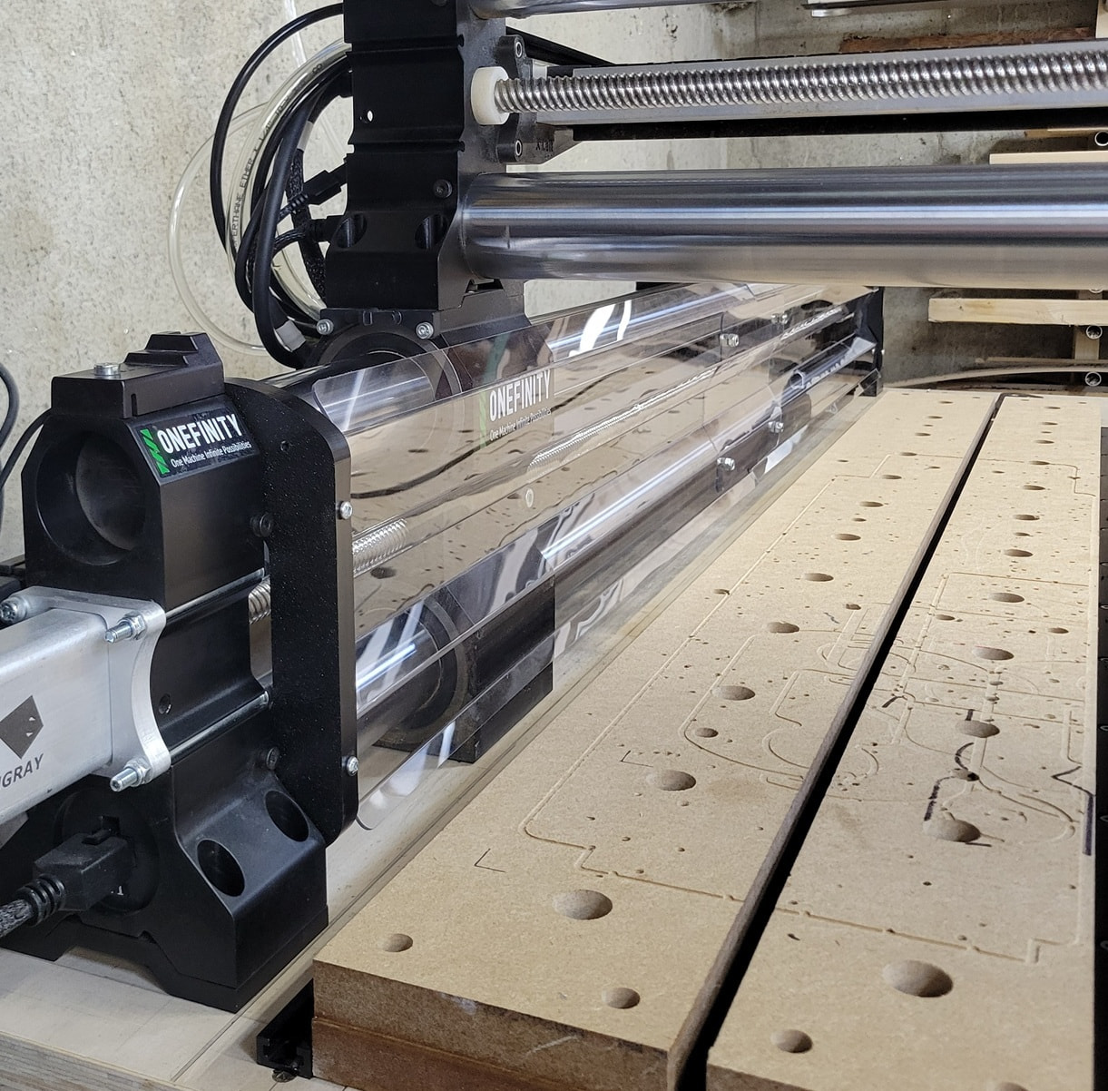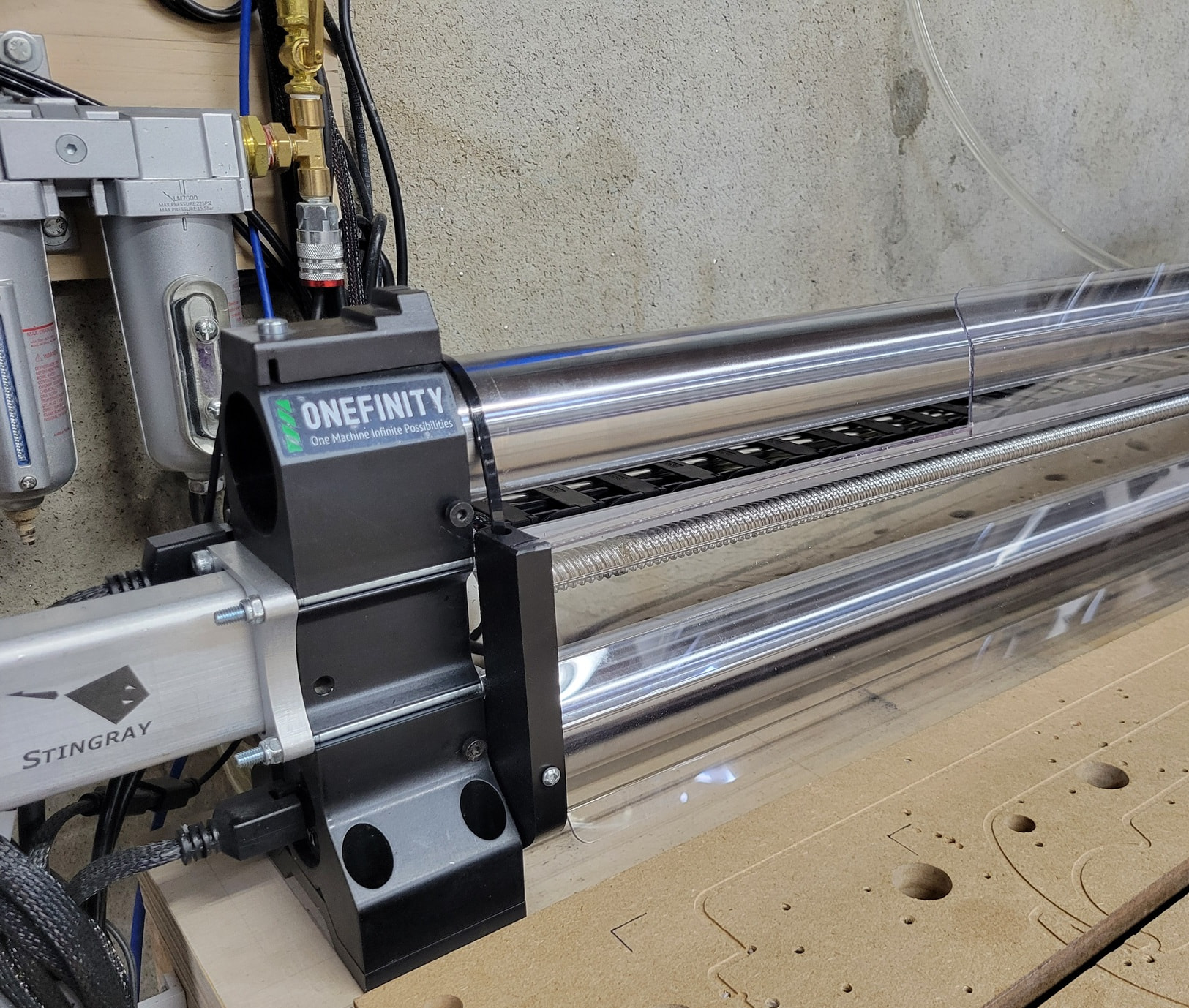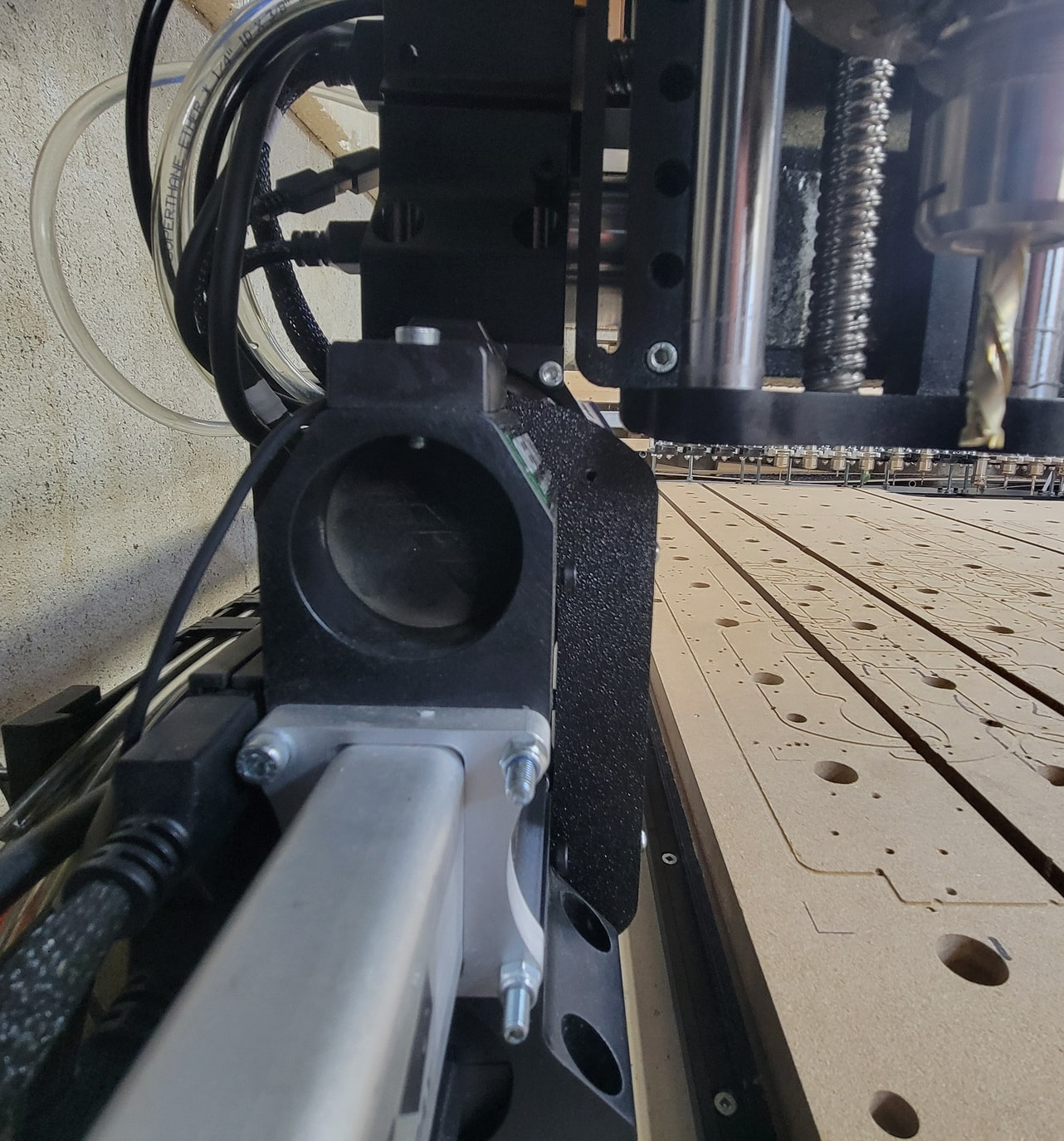 Lots of effort went into ensuring these guards don’t reduce the work area of the machine nor interfere with homing. When the machine is homed the closest part of the Z-axis assembly (the black aluminum Z-plate) stops 1/8” away from the black plastic end plate of the guard.