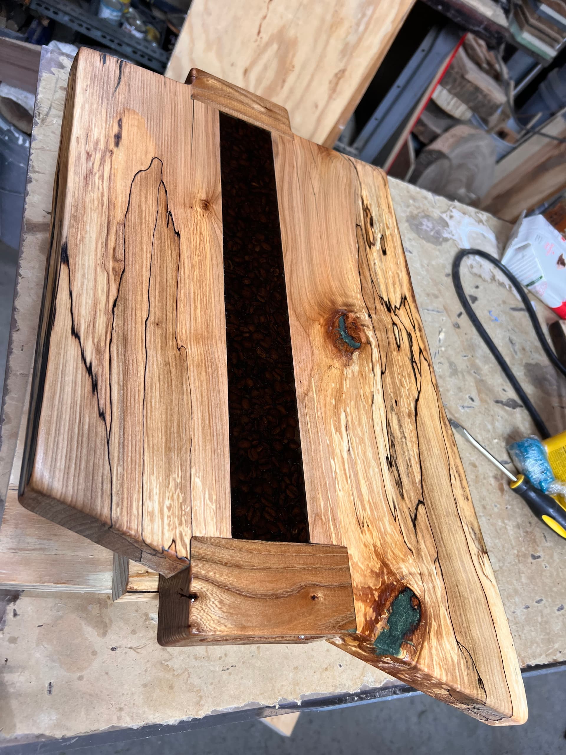 Coffee Beans in clear epoxy - Spalted Maple Not sure of the ends, salvaged from a table going to the dumpster. Think itâs Butternut