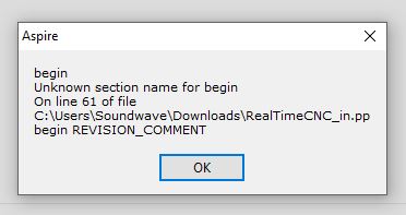 The Elite Series with @Redlinecnc Controller. Trying to add the RealtimeCNC pp into Vectric Aspire V10.516 and get an error…